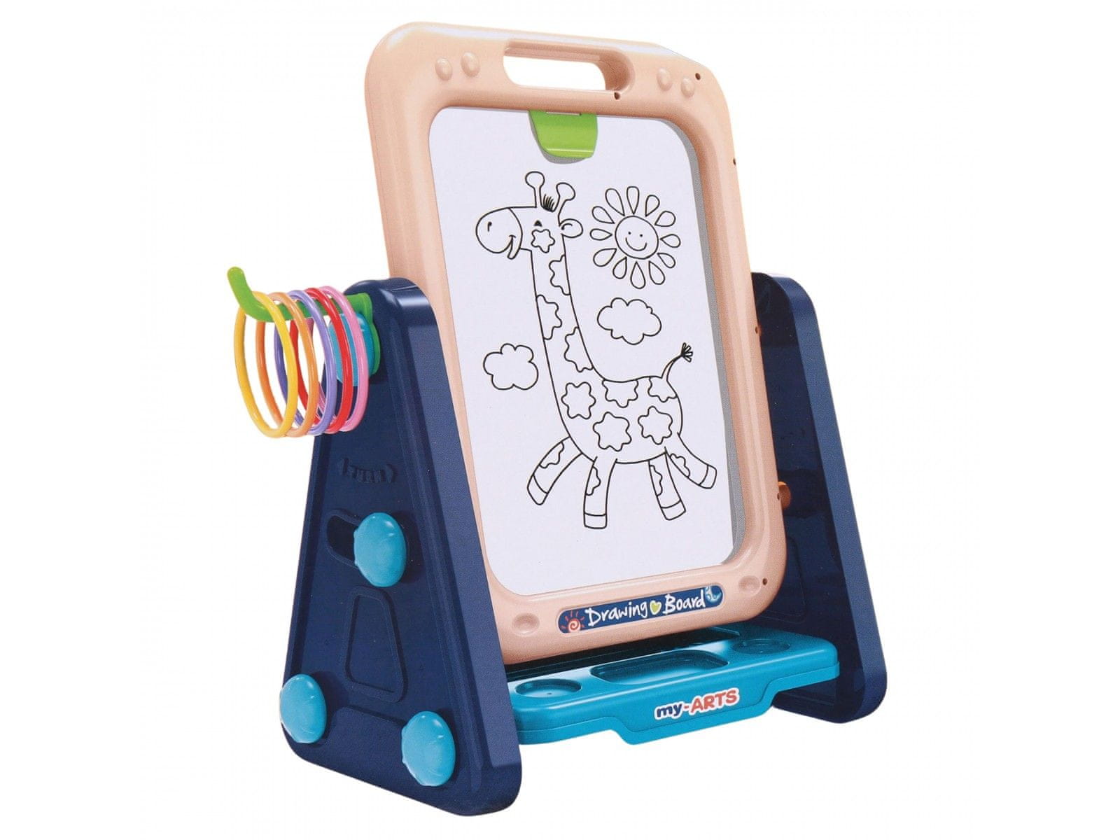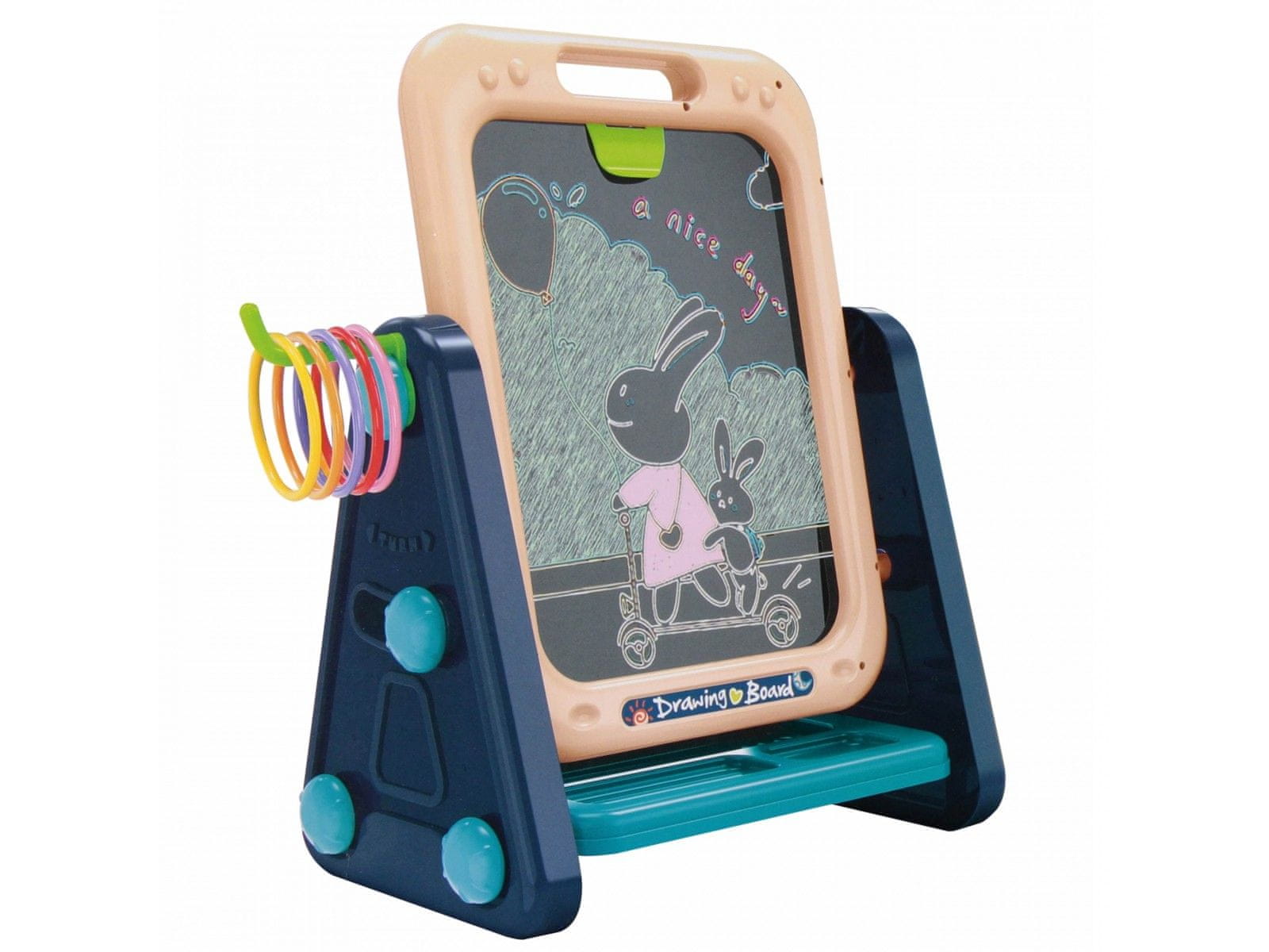 Dvostranska tabla omogoča risanje in pisanje ter razvija ustvarjalnost in ročne spretnosti.