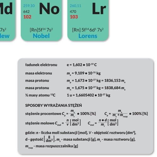Izobraževalna tabla Periodni sistem elementov 146 × 100 cm vsebuje informacije, kot so:
