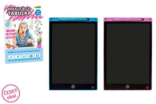 LCD miza za risanje 11,5". Piše v barvah. Dimenzije 18,5×0,5×29 cm. Diagonala 30 cm. Simbol košarice na sprednji strani briše tablico. Stikalo na hrbtni strani – blokada proti brisanju tablice. Če tabličnega računalnika ni mogoče izbrisati, ko je ključavnica odprta, je treba zamenjati baterijo. Vključena je baterija 1×CR2025. Zamenjava baterije – spodnji rob tabličnega računalnika. 2 barvni možnosti – modra, rožnata.