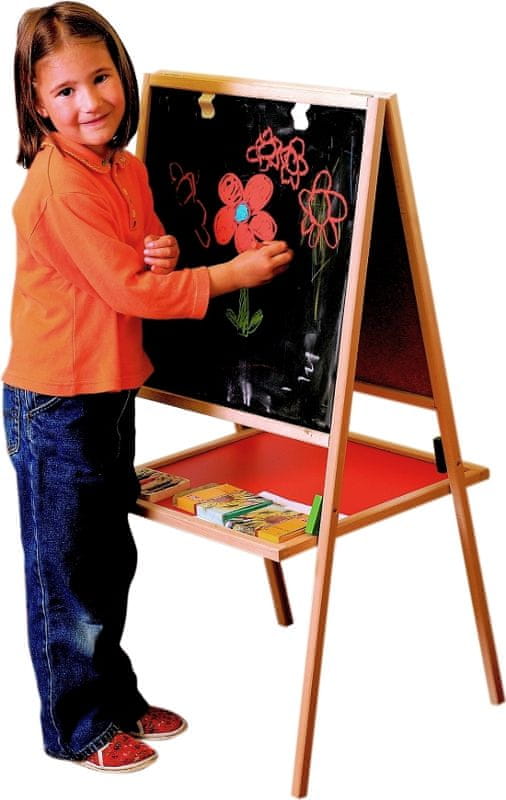 Magnetna lesena tabla s pripomočki je nastavljiva po višini. Dimenzije 40×67/86 cm. Dimenzija risalne, pisalne površine je 53.5×36 cm. Tablo se lahko uporablja na dveh različnih ploskvah.