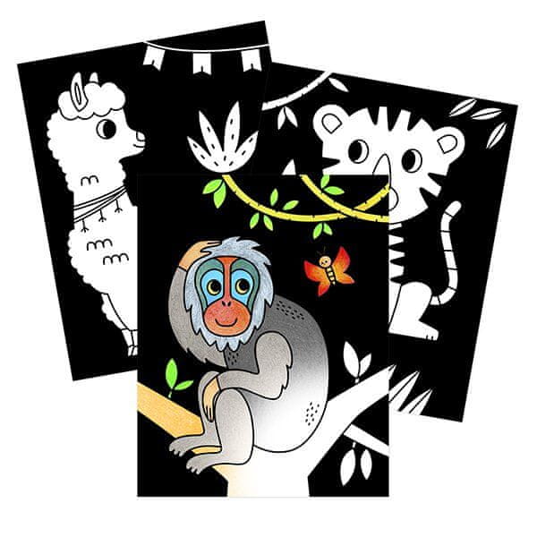 Avenue Mandarine Graffy Črna pobarvanka velikega formata z motivom živali. Črna barva ozadja papirja skriva morebitno pretirano raztegovanje. Predizrezane strani za lažje iztrganje iz bloka. Pobarvanka vsebuje 24 listov, 12 motivov v kompletih po 2. Teža 160 g. 21 × 34,2 cm