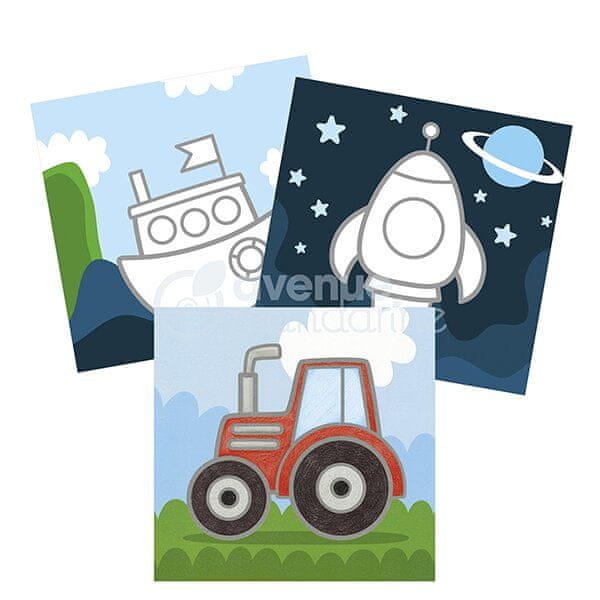 Pobarvanka Avenue Mandarine Graffy Easy z motivi prevoznih sredstev. Celoten opis