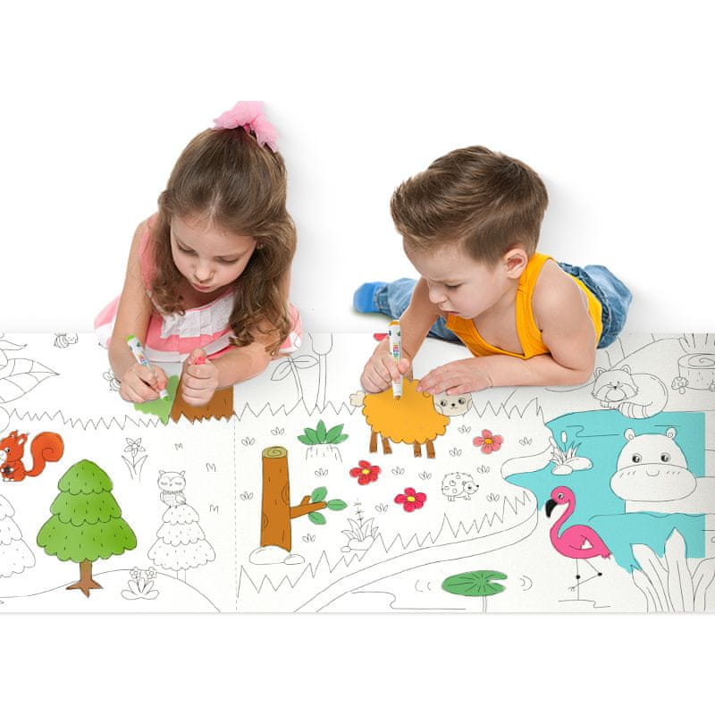Polna velikost papirja za barvanje je 43 cm x 10 m. Otrokom omogočite, da se z barvanjem še bolj zabavajo.