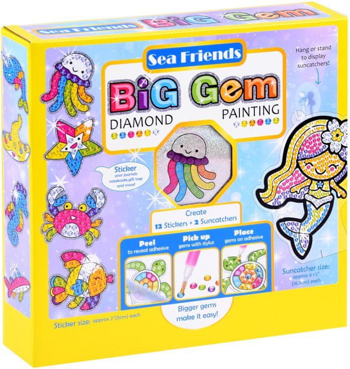 Paket vsebuje: barvne kamenčke, aplikator, skledo, vosek, 2 lovilca sonca in 12 nalepk. Zgornja stran nalepk je premazana z lepilom in prekrita s prozorno folijo. V skledo nasujte kamenčke želene barve. V konico pisala zajemite vosek, da se kamenčki zlahka prilepijo na pisalo, in ga nanesite na sliko.