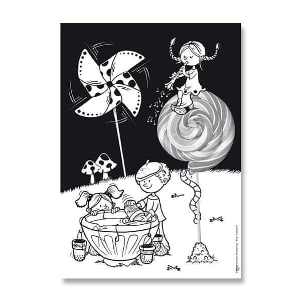 Pričakovano barvite slike brez madežev barve. Na voljo v dveh različicah. 10 strani/ 10 različnih motivov. Vključen čopič. Velikost A4. Papir 300 g/m2. primerno za otroke, starejše od 4 let