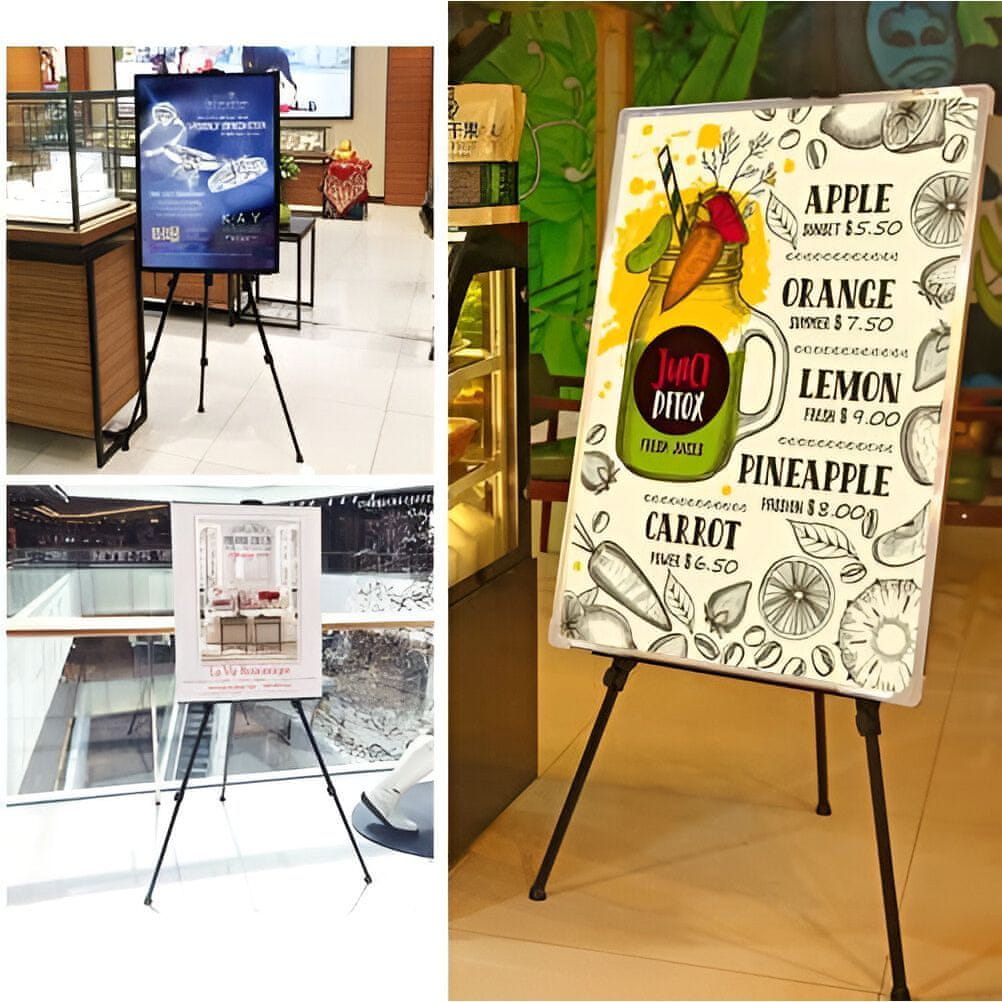 Stojalo ima 3-segmentne noge, ki zagotavljajo natančno nastavitev višine stojala. Nastavljiva višina nosilca slike – z enim gibom sponke se prilagodi višina in debelina slike.