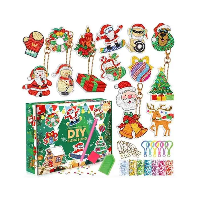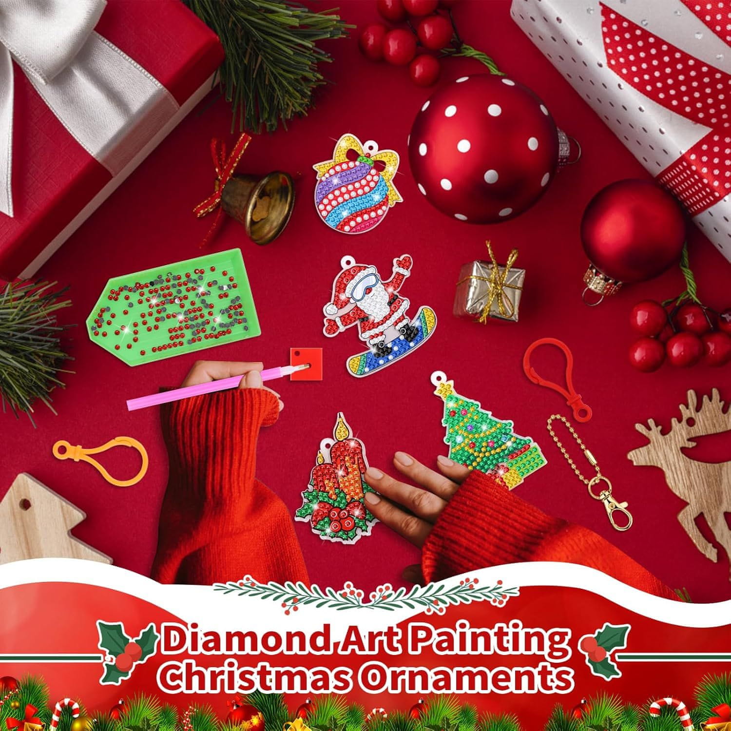Netscroll 15- delni ustvarjalni set- diamantno slikanje, DIY izdelava božičnih obeskov z barvitimi kamenčki, družinsko ustvarjanje, ideja za darilo, PerfectGift