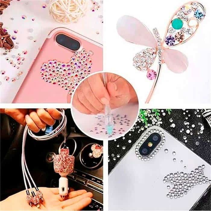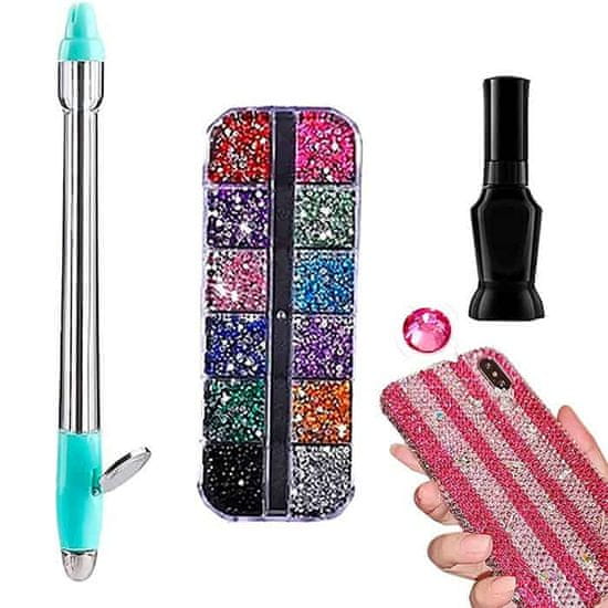 Netscroll Diamantno barvanje in okraševanje, Set za nanašanje diamantov s 2000 diamanti, 12 barv, svinčnik, lepilo, idealno za okrasitev nohtov, mobilnih telefonov, torbic, skodelic in več, BlingDecor