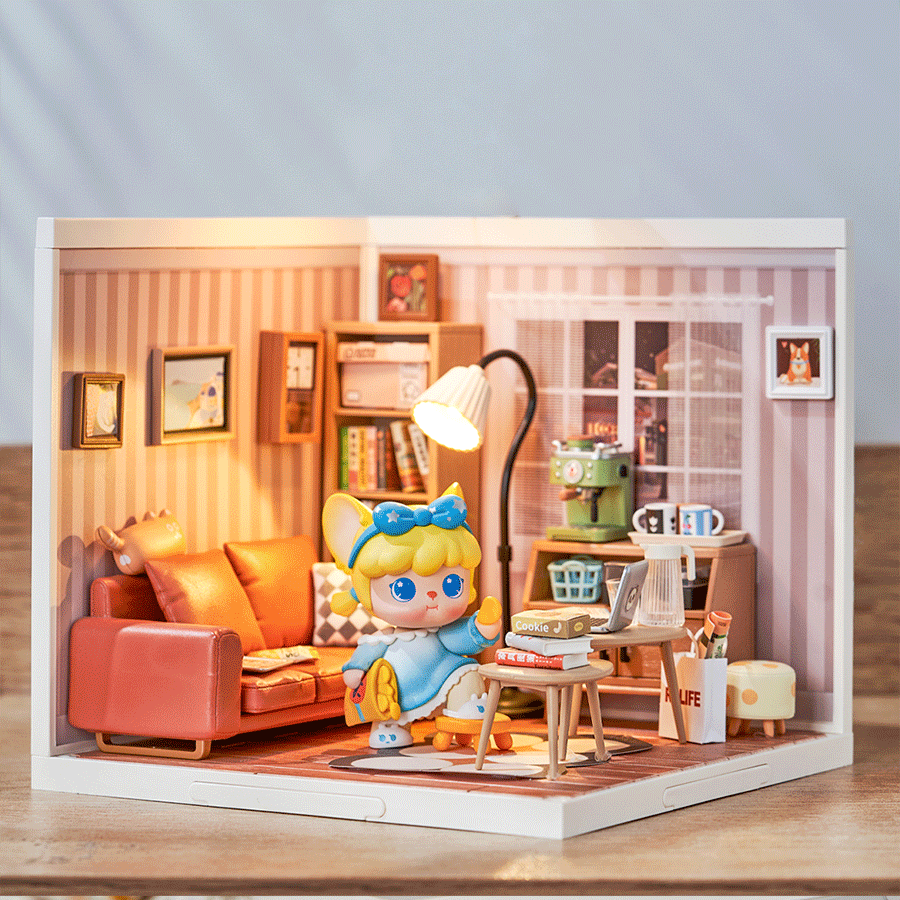 Robotime 3D lesena sestavljanka Miniaturna hiša Udobna dnevna soba