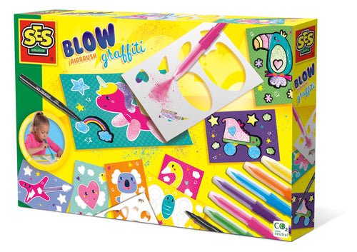 Ustvarite lepe graffiti barvne efekte z brizganjem s flomastri. Narišite kul obrobe z črnim čopičem. Uporabite pametne šablone za čist rezultat.Vsebina: 6 svetlih barv brizgalnih flomastrov Črn čopič 8 natisnjenih barvnih listov 5 nenatisnjenih papirnih listov 2 šabloni Barve se enostavno izperejo s Celoten opis