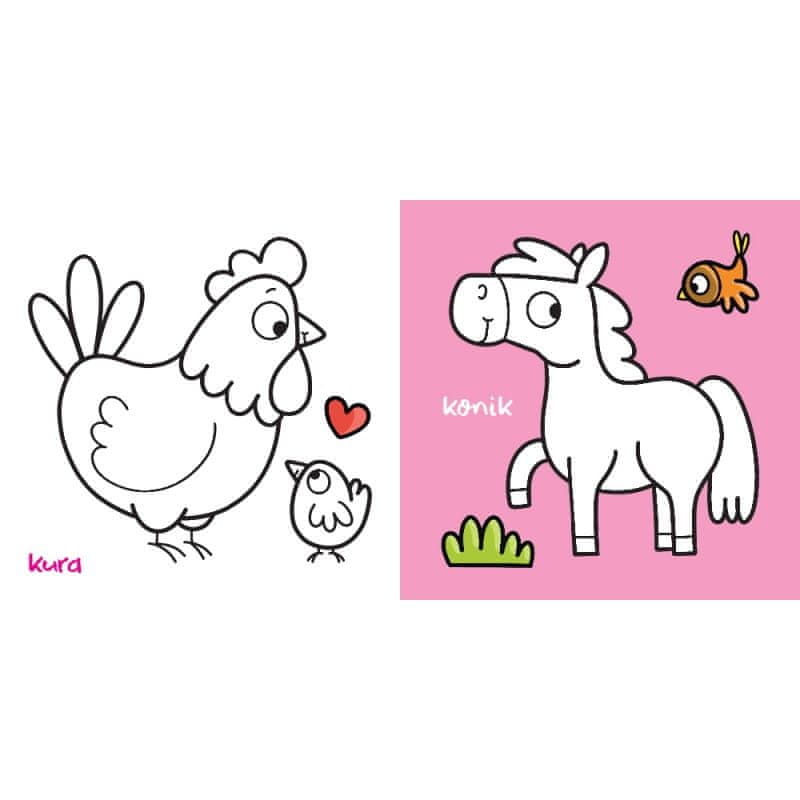 Pobarvanka za najmlajše – Medvedek barva – Na podeželju. Serija knjig za prve igre z barvicami. Otrok se nauči tudi imena živali in vozil. Vesele risbe z debelim obrisom in komplet nalepk bodo malčke spodbudile k barvanju. Avtor: Agnieszka Bator Založba: Aksjomat Leto izida: 2023 Vezava: mehka Število strani: 12 Format: 19×19 cm