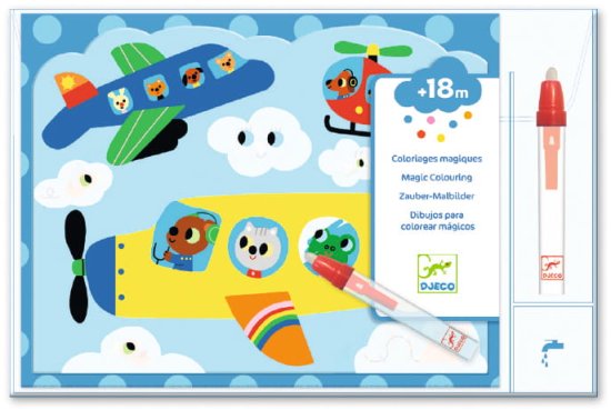 • Čarobne pobarvanke Skrito v nebu Odkrijte nebo s tem očarljivim kompletom za barvanje Samo napolnite pisalo z vodo in zabava se lahko začne! Začnite barvati ilustracije in odkrili boste ogromno presenečenj, skritih v sliki Ste končali s slikanjem vseh slik? Ni problema! Pustite jih, da se posušijo, in ko se posušijo, lahko zabavo začnete znova in znova