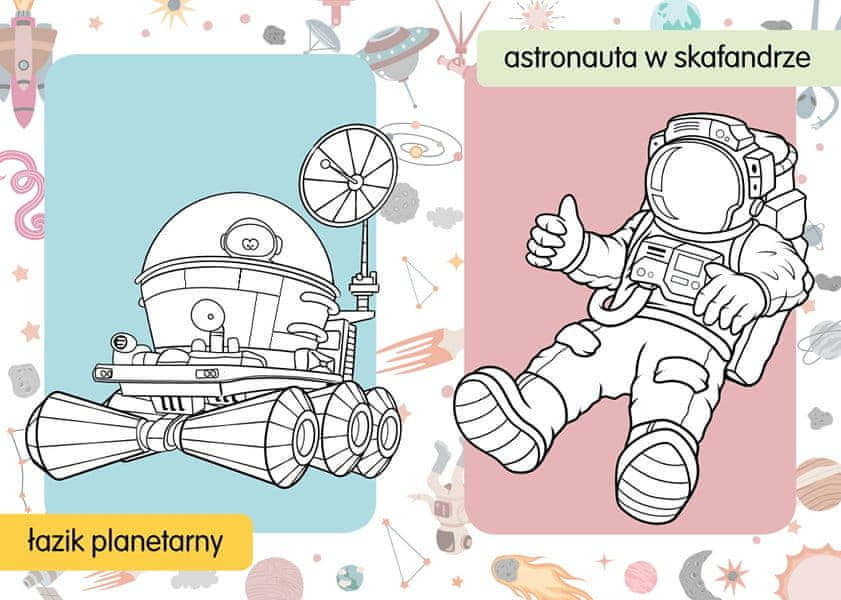 Pobarvanka vesoljske tetovaže. Knjiga vsebuje slike za barvanje in komplet pralnih tatujev. Založba: Skrzat Leto izida: 2023 Vezava: mehka Število strani: 16 Format: 14 × 20 cm Starost: 3+