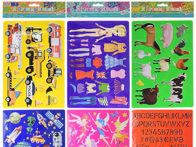 Šablone za risanje 26,5×18 cm 2 kosa – mešanica različic ali barv Celoten opis