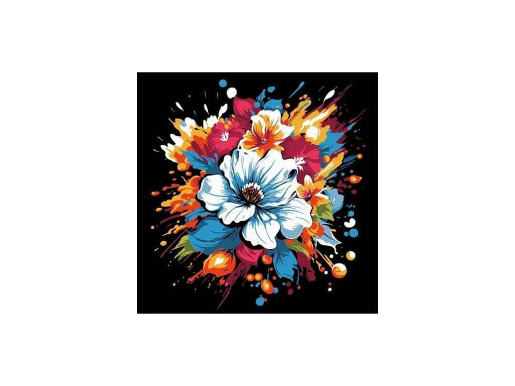 Slika cvetja, naslikana po številkah (30 × 30 cm)) – slika na črnem platnu <br> <br> S to ročno poslikano sliko vnesite v svoj dom eleganco in igrivost. Celoten opis