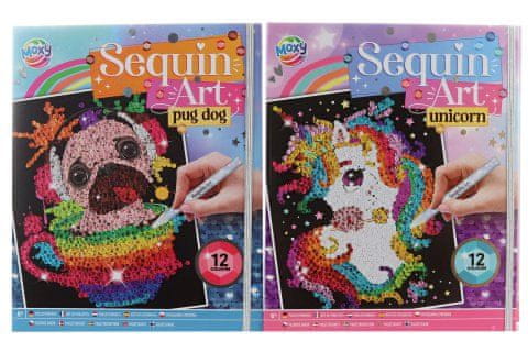 Produkcija slike enoroga ali psa po številkah. Komplet vsebuje sliko s številkami dimenzij 20×25 cm, koleščke v 12i barvah in pisalo za odmerjanje. Dimenzije paketa 22×26,5×3 cm. Starost 3+ (priporočljivo od 6. leta dalje)