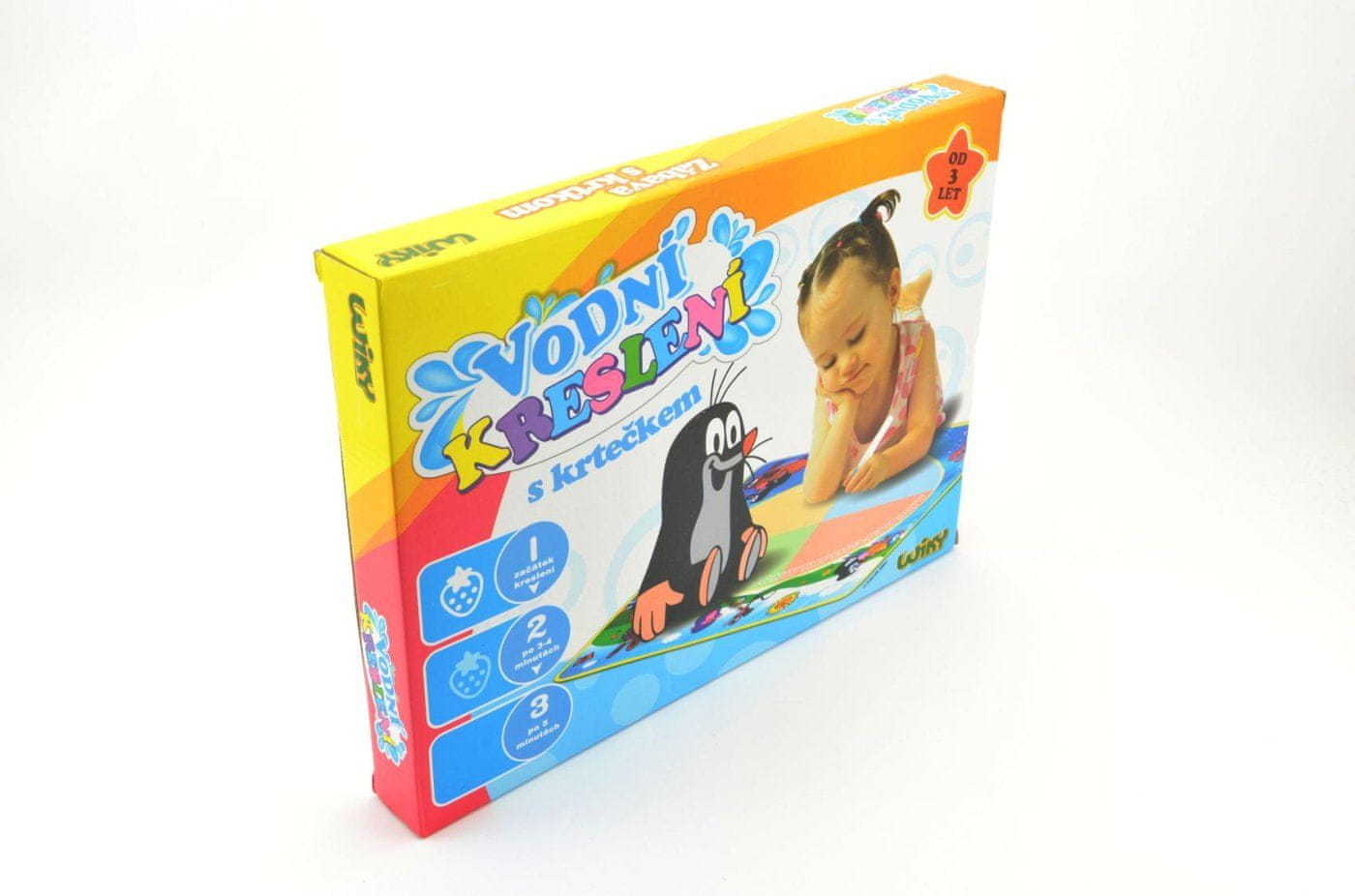 Vodno risanje s Krtkom je odlično orodje za učenje risanja ali pisanja. Risanje lahko uporabite tudi pri poučevanju in igranju. Slikanje vadi ročno spretnost, samo napolnite vodo v priloženi označevalnik in začnite slikati. Po 5 minutah risbe izginejo, zato je risalna površina čista in pripravljena za nadaljnje slikanje. Dimenzije paketa 38 × 27 × 5 cm. Primerno za otroke od 3. leta starosti dalje.