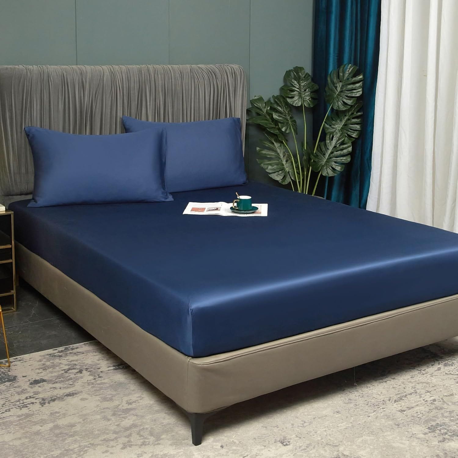 Nikcorp Napenjalna rjuha 140x200 cm mornarsko modra | Gladka bambusova rjuha z elastiko za visoke vzmetnice do 30 cm