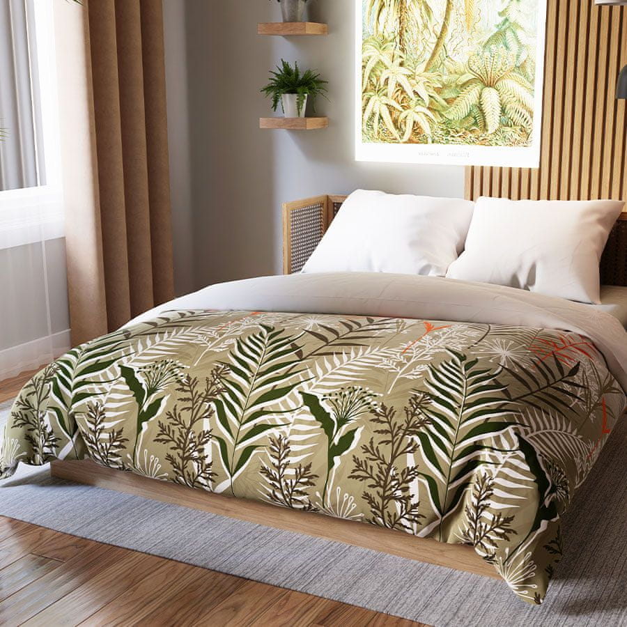 Odkrijte izjemno udobje in eleganco s kompletom posteljnine FELINA! Nežen bež odtenek in vzorec tropskih rastlin vas bosta popeljala v sproščujoč svet narave. Nežni listi in eksotično cvetje ustvarjajo skladno kompozicijo, ki se popolnoma prilega notranjosti v boho, skandinavskem, rustikalnem ali eko slogu.