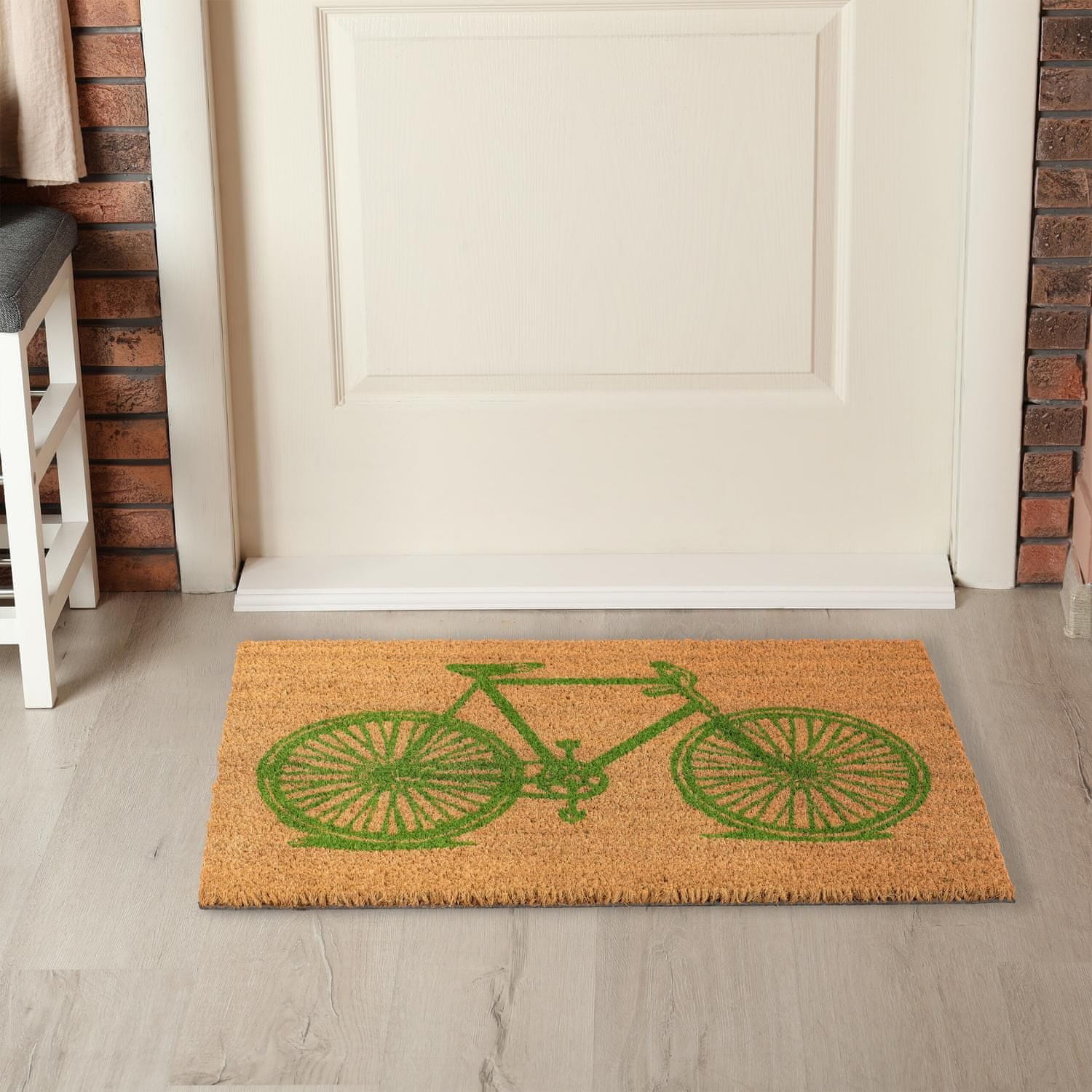Polepšajte svoj vhod s sodobnim predpražnikom iz kokosovih vlaken, ki ima eleganten motiv zelenega kolesa za pridih dobrodošlice. Ta trpežna podloga, odporna na vremenske vplive, zadržuje umazanijo v zaprtih prostorih ali na prostem.