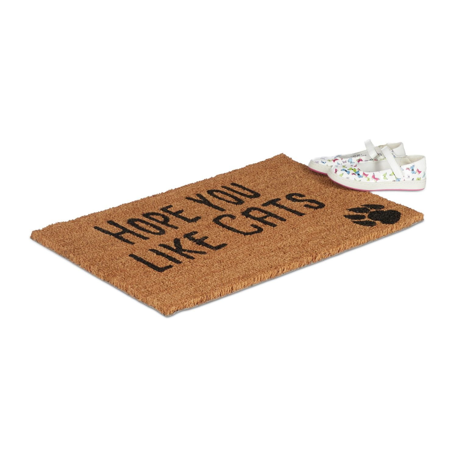 Polepšajte svoj vhod s predpražnikom iz naravnih kokosovih vlaken, popolnim za ljubitelje hišnih ljubljenčkov. Ta trpežna, okolju prijazna podloga je odporna na vremenske vplive in nudi nedrsečo PVC podlago za varno namestitev.