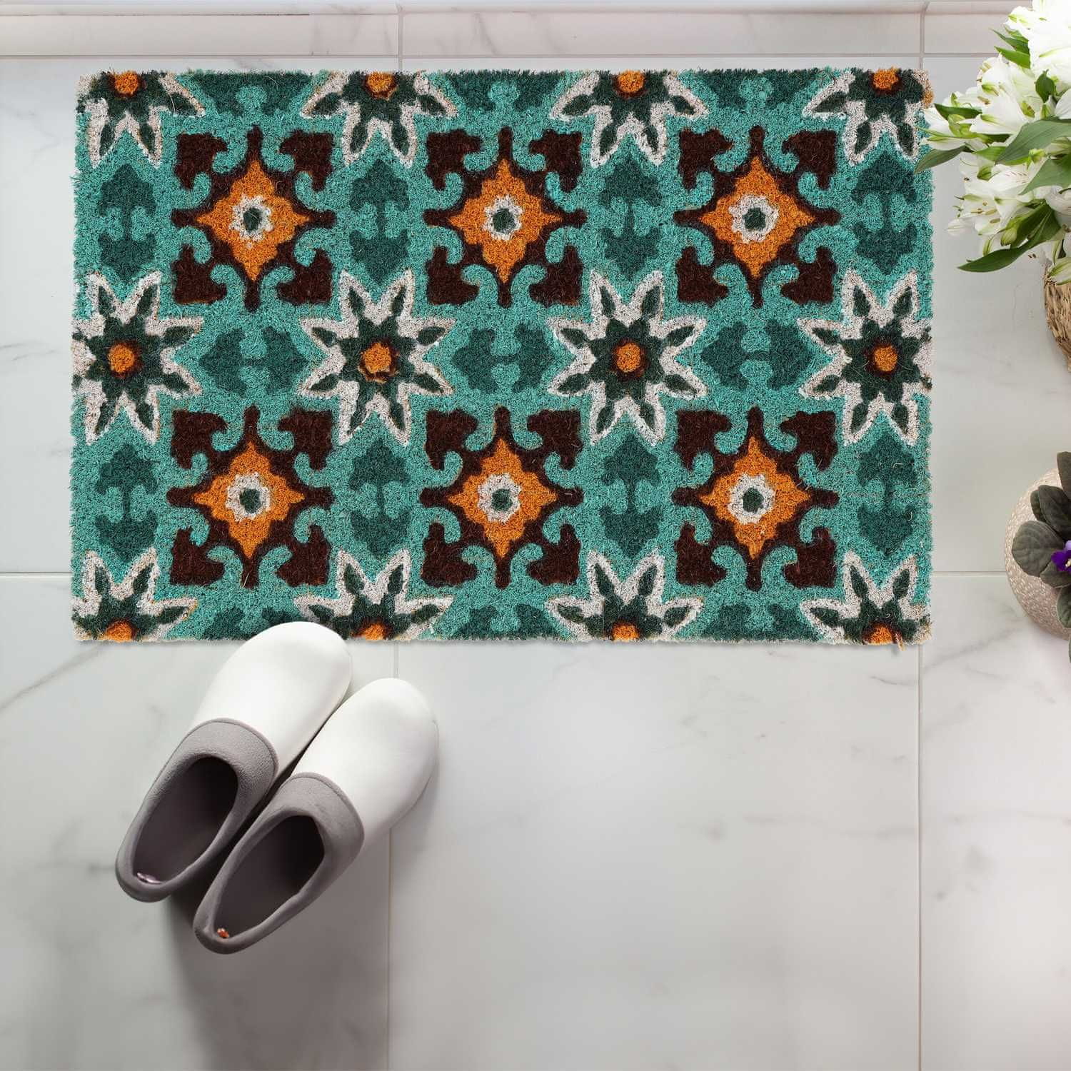 Polepšajte svoj vhod z robustnim predpražnikom iz kokosovih vlaken, zasnovanim za učinkovito zajemanje umazanije, hkrati pa doda barvni kanček s svojim orientalskim vzorcem. Idealno za notranjo in zunanjo uporabo.