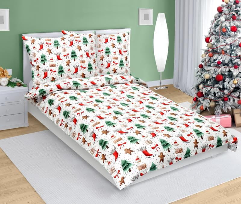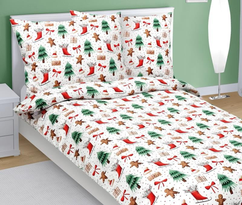 Bombažna posteljnina - Božič - 140x200, 70x90 cm - Medenjak