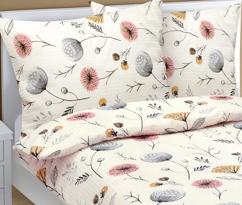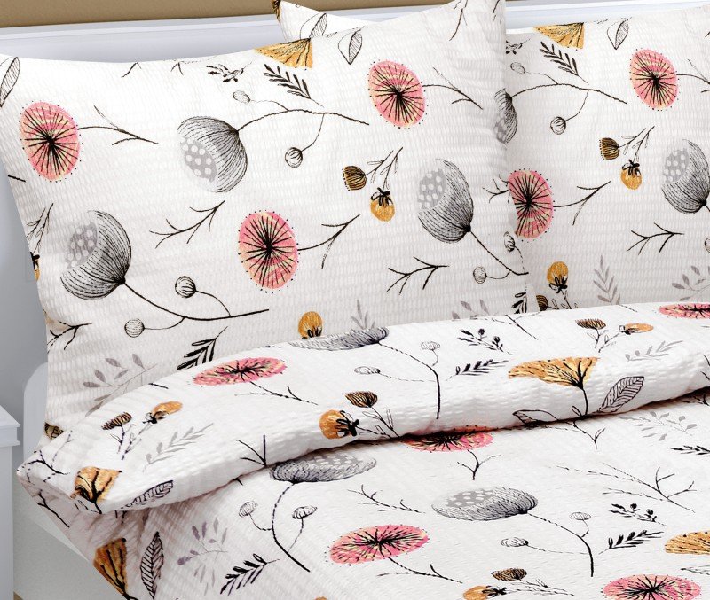 • Prevleka je izdelana iz 100-odstotnega bombaža, ki diha in zelo dobro vpija vlago. Te lastnosti vam bodo zagotovile popolno udobje med spanjem. Idealen je za tiste, ki cenijo udobje in praktičnost. Prevleke ni treba likati. Na voljo imamo široko paleto barv in vzorcev, ki bodo v vašo spalnico vnesli izvirnost in prijetnost. Nekateri vzorci krep posteljnine so na voljo v podaljšani dolžini 220 cm.