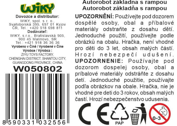 Podstavek Avtorobot s kompletom rampe. Vsebina paketa – osnova za tovornjak avtorobot 38 cm, 2× avtorobot 7,5 cm, prometni znaki. Avtoroboti se spremenijo v tovornjake.