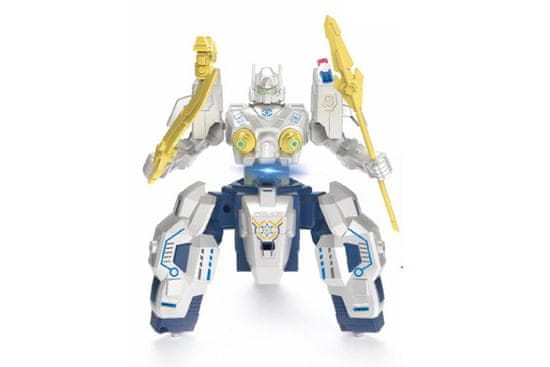 Robot policist kajenje RC daljinski upravljalnik. Dimenzije 14×13,3×19 cm. Leva ročica se premika naprej in nazaj, desna ročica se vrti levo in desno, srednji gumb učinkuje kot dim. 3,7V 400MAH baterija za robota, 2×AA za krmilnik ni vključena. Priložen je kabel USB – 2 barvni različici: črna, bela.