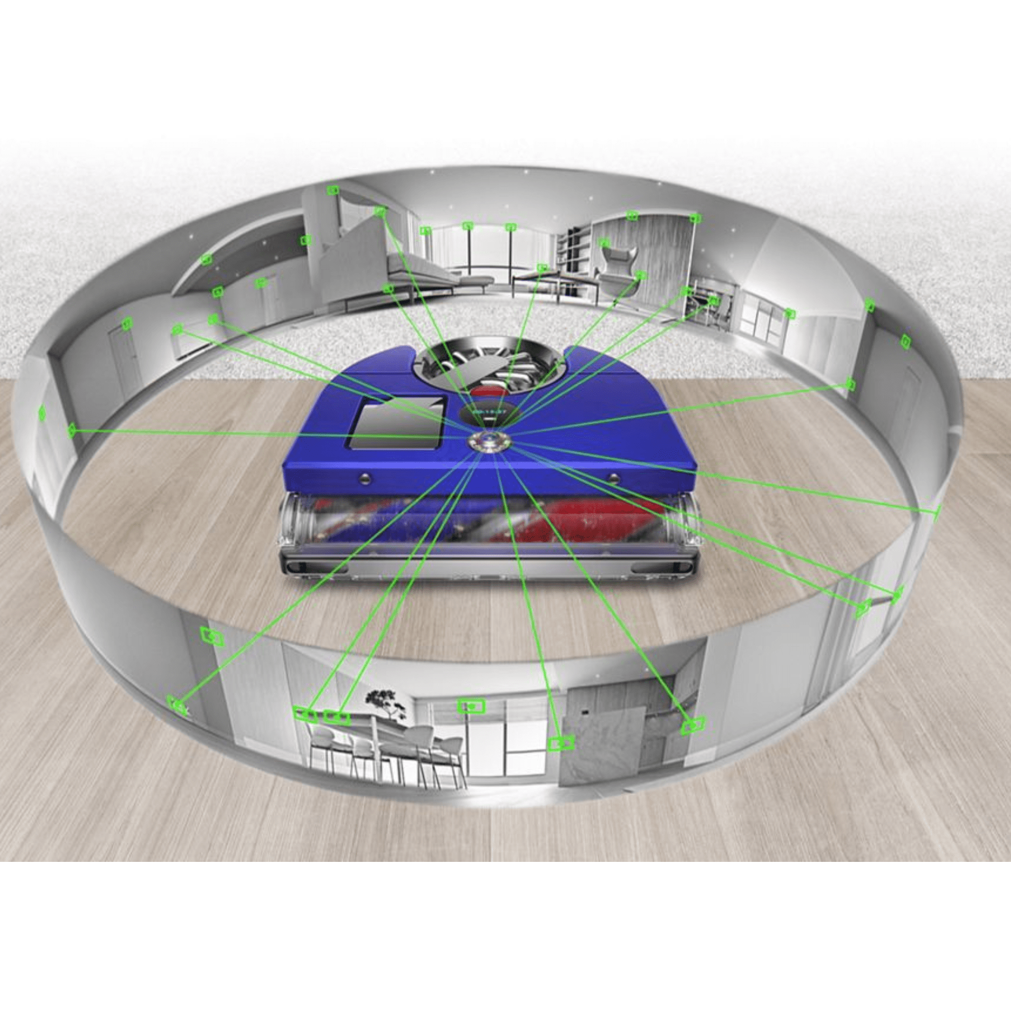- Visoka sesalna moč: Dyson Hyperdymium™ motor dosega do 110.000 vrtljajev na minuto in zagotavlja šestkrat večjo uporabno moč kot drugi robotski sesalniki. Sistem HEPA filtracije zajame 99,99 % delcev velikosti do 0,1 mikrona.