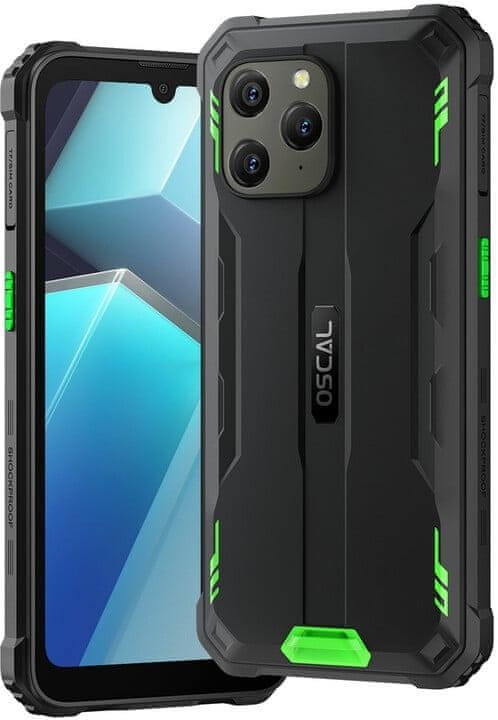 Pametni telefon Oscal S70 je pravi skrbnik, ki se lahko upre tudi najbolj ekstremnim razmeram. Telefon ima zmogljivo konstrukcijo iz visokokakovostnih materialov in ojačane robove – zato je odporen proti padcem in udarcem. Ima zaščito pred vodo in prahom IP68 in IP69K, ponaša pa se tudi z visoko oceno vzdržljivosti po vojaškem standardu MIL-STD-810H. Zato nanj ne vplivajo potopitev v vodo, prašna okolja ali ekstremne razmere. Njegov velik 6,1-palčni zaslon IPS z ločljivostjo HD+ uspešno kljubuje praskam, udarcem in običajni obrabi. Brezhibno fotografiranje zagotavljata prednja kamera z ločljivostjo 8 MP in glavna kamera 13 MP s posebnim načinom za čiste in jasne podvodne fotografije! Vse to dopolnjuje vrsta dodatnih funkcij za zunanje razmere, kot sta na primer način nadzora z rokavicami in zanka za vrvico.
