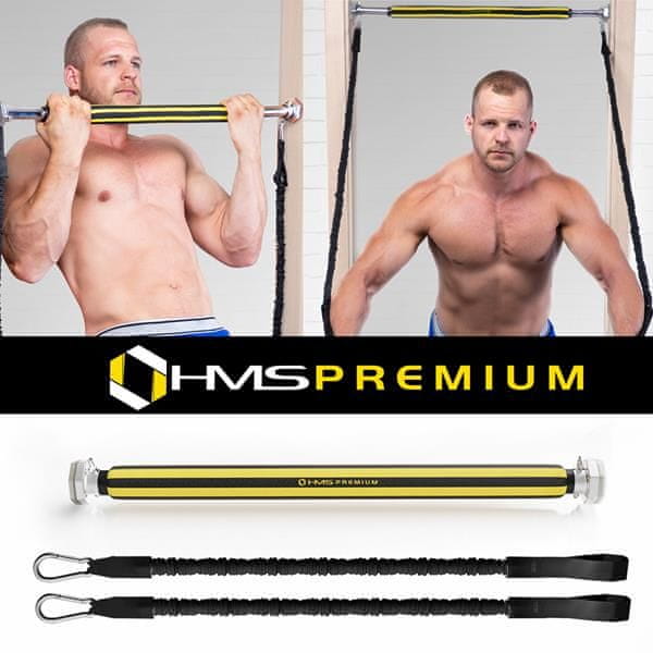 DD03 HMS PREMIUM – je podaljšek iz zelo trpežne železove zlitine. Ta izdelek je odlična rešitev, če nimate dovolj prostora za domačo telovadnico polne velikosti. Širok razpon prilagajanja dolžine v razponu: 67,5 – 100 cm, kar vam bo omogočilo, da boste zlahka našli prostor za namestitev palice. Poseben ročaj iz pene preprečuje, da bi vam roke zdrsnile. Z vijaki, ki so vključeni v komplet, ga je mogoče preprosto namestiti v okvir vrat. Navoji zagotavljajo stabilno namestitev palice. K palici so priloženi uporovni kabli, ki bodo vadbo DD03 obogatili s številnimi dodatnimi vajami. Zahvaljujoč tej rešitvi bomo aktivirali vsak del mišic in izvedli popolno, celovito vadbo.