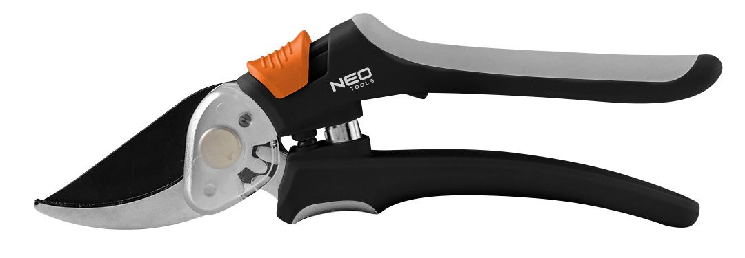 200 mm bypass škarje za travo, z območjem rezanja do 18 mm, s prestavnim razmerjem 15–204 znamke NEO TOOLS, so enoročno orodje, opremljeno s praktičnim prestavnim mehanizmom, ki omogoča delo, ki zahteva manj sile. Orodje ima tudi ergonomski ročaj z mehkimi gumijastimi elementi in varnostno zaporo z enim gumbom. Sistem bypass rezila zagotavlja večjo natančnost. S temi škarijami lahko obrezujete občutljive veje, poganjke, grmičevje, rože in zelišča. Njihovo visokokakovostno kaljeno jekleno rezilo, primerno za svež les, je prevlečeno tudi s PTFE premazom proti prijemanju. Priporočljivo tako za profesionalce kot za vrtnarske navdušence.