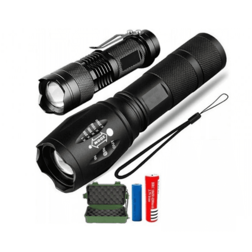 Komplet dveh taktičnih svetilk. Zasnova prve temelji na učinkoviti in sodobni diodi XM-L T6 LED, druga pa na diodi Q5 LED.