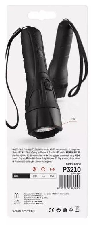 Emos LED svetilka, plastična, 55 lm, blister, z enim načinom osvetlitve, 16-urnim časom svetenja in 125-metrskim dosegom svetlobe. Celoten opis