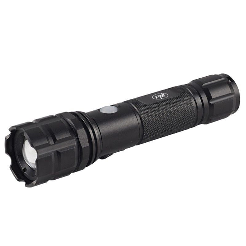 PNI Adventure F10 aluminijasta ročna svetilka z 1x6W LED, 500lm do 200m fokusa, z baterijo in mikro USB priključkom
