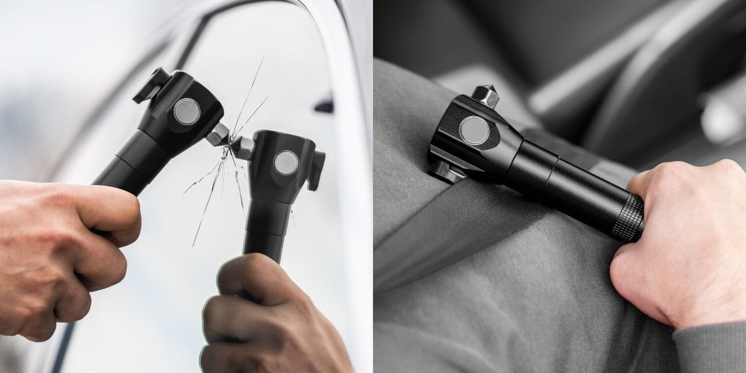 Svetilka je opremljena s trpežnim kladivom, zasnovanim za razbijanje stekla v sili, kar je še posebej koristno pri nesrečah ali v situacijah, ko je potrebno hitro ukrepanje.