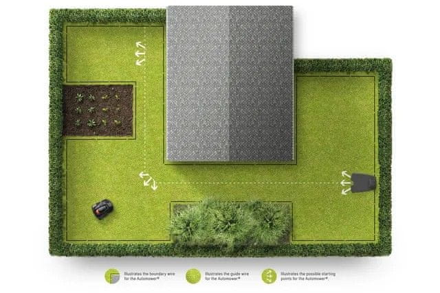 Enakomerna košnja po celotni trati zahvaljujoč možnosti začetka košnje na treh različnih točkah vzdolž patentirane mejne žice, zunaj polnilne postaje. Večja kot je trata, bolj uporabne so različne začetne točke košnje. Zahvaljujoč GPS-navigaciji (izbrani modeli) se začetne točke košnje nastavijo samodejno, kar odpravlja potrebo po ročnih nastavitvah.