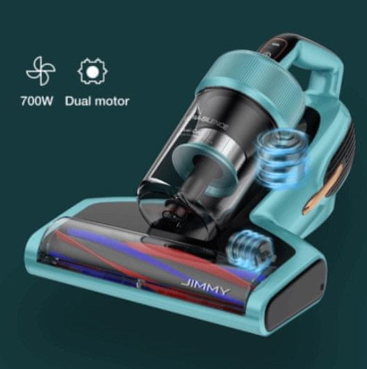 Moč: Jimmy BX7 Pro se ponaša z visoko zmogljivim 700 W motorjem, ultrazvočno sterilizacijsko tehnologijo ter dodano toplotno tehnologijo, ki v pičlih 5-ih sekundah segreje zrak v njegovi notranjosti na 60° (simulacija toplote sonca) ta pa pri samem sesanju globinsko prodre v notranjost ter tako hitro in uspešno odpravi s kar 99.99 % pršicami in nezaželenimi bakterijami.