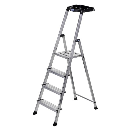 KRAUSE Folding ladder Krause Secury s 4 stopnicami, aluminijasta, srebrna, z nedrsečimi nogami in shranjevalno škatlo