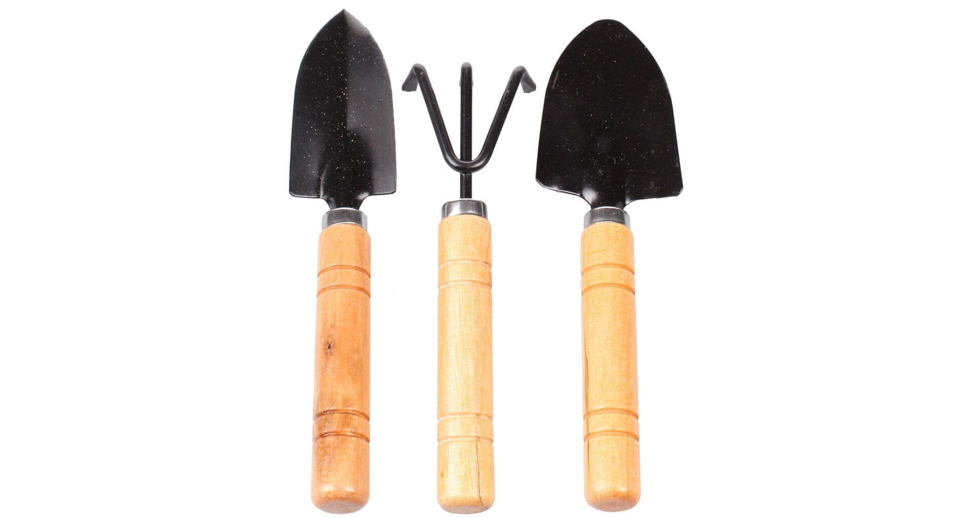 Mini komplet je tridelni komplet vrtnega orodja, namenjen rahljanju zemlje na cvetličnih gredicah, v cvetličnih koritih in loncih. Ta mini komplet orodja vključuje ozko lopatko dolžine 17 cm, širšo lopatko dolžine 17 cm in grablje dolžine 15 cm. Vsa tri orodja so izdelana iz železa z lesenimi ročaji. Teža celotnega kompleta je le 90 g. Pripravite se na spomladansko sezono z mini kompletom. – komplet: 2× lopata (17 cm), 1× grablje (15 cm) – teža: 90 g – za lonce, gredice, dvignjene gredice, sadike