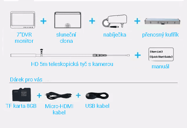 Inšpekcijska kamera je zasnovana tako, da je odporna proti vibracijam in prahu ter ima standard vodotesnosti IP68 + miniaturni infrardeči svetlobni vir LED-sonda. Poleg tega ima 7-palčni monitor s funkcijo zajemanja slik, snemanja videoposnetkov in 4-kratno povečavo za ogled od blizu.