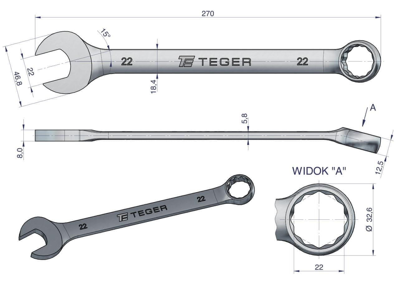 22 mm viličasti ključ / TEGER Celoten opis
