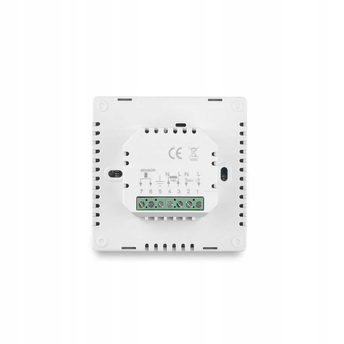 TERMOSTAT COMFORT HT-08 (ŽIČNI + WI-FI) ZA TALNO OGREVANJE. Termostat za talno ogrevanje HT-08 se uporablja za vklop in izklop ogrevalnih sistemov doma. Krmiljenje je mogoče izvajati ročno ali s programirljivimi cikli. Termostat HT-08 vzdržuje udobno ali ekonomično temperaturo, odvisno od nastavljenega programa in časa. Znižuje stroške energije z znižanjem temperature, ko uporabniki niso prisotni. Model HT-08 je opremljen z dvema temperaturnima senzorjema: enim, vgrajenim v termostat, ki meri temperaturo v prostoru, in drugim, zunanjim, ki uravnava temperaturo tal. Termostat se prek žice poveže s kotlom centralnega ogrevanja. Upravljanje prek Wi-Fi omogoča postavitev naprave kjer koli v domu. Ključne lastnosti: Velik, enostavno berljiv zaslon (črn) Osvetlitev ozadja zaslona (bela) Programiranje 4 ciklov na dan Možnost upravljanja s pametnim telefonom Brezžična povezljivost Wi-Fi Dva načina delovanja: ročni in PRG Elektronski nadzor ogrevanja Prikaz trenutnih in nastavljenih temperatur Temperaturna zaščita pred pregrevanjem Kompaktna velikost Način odprtega okna (OWD) Ko je v nastavitvah omogočeno zaznavanje odprtega okna, naprava samodejno izklopi ogrevanje, ko zazna nenaden padec temperature (privzeto 2 °C v 15 minutah). To je pravilen odziv termostata na situacijo, ko se okno/vrata odprejo brez izklopa ogrevanja. Naprava se bo po 30 minutah vrnila v normalen način. Če med načinom OWD pritisnete kateri koli gumb, se bo takoj izklopila. Brezžična povezljivost (Wi-Fi) Komunikacija Wi-Fi vam omogoča enostavno upravljanje termostata od koder koli v vašem domu. Preprosto prenesite aplikacijo Smart Life iz trgovine Google Play in napravo seznanite s pametnim telefonom. Tehnični podatki Napajanje: 230 V, 50/60 Hz Največja obremenitev: 16 A Območje nastavitve: 5–35 °C Delovno območje: 0–50 °C Relativna vlažnost: 85 % Osvetlitev ozadja: Bela Senzor: NTC 10 K Občutljivost: +–0,5 °C Zaščita: 30 IP Ohišje: ABS UL94–5 (ognjevarno) Dimenzije: 86 × 86 × 16,8 mm Teža: 0,144 kg