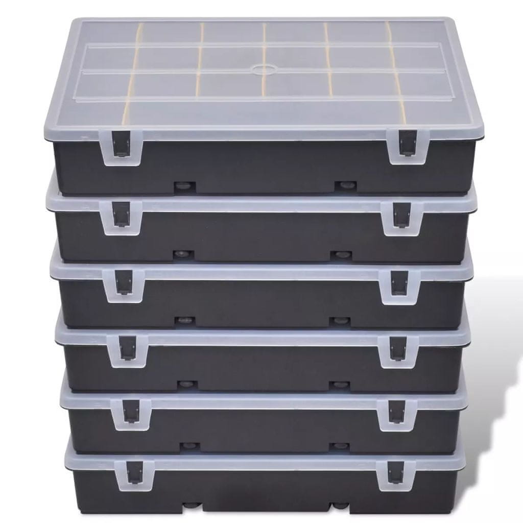 Ta set robustnih plastičnih škatel za orodje vključuje 6 kosov in je idealen za shranjevanje orodij, kot so matice, vijaki, in drugi majhni deli. Vsaka škatla za orodje ima 21 predelov, ki bodo zagotovo pomagali, ohranjanje drobnega inventarja v vrstnem redu in s tem prinesli udobje za nadaljnjo uporabo.