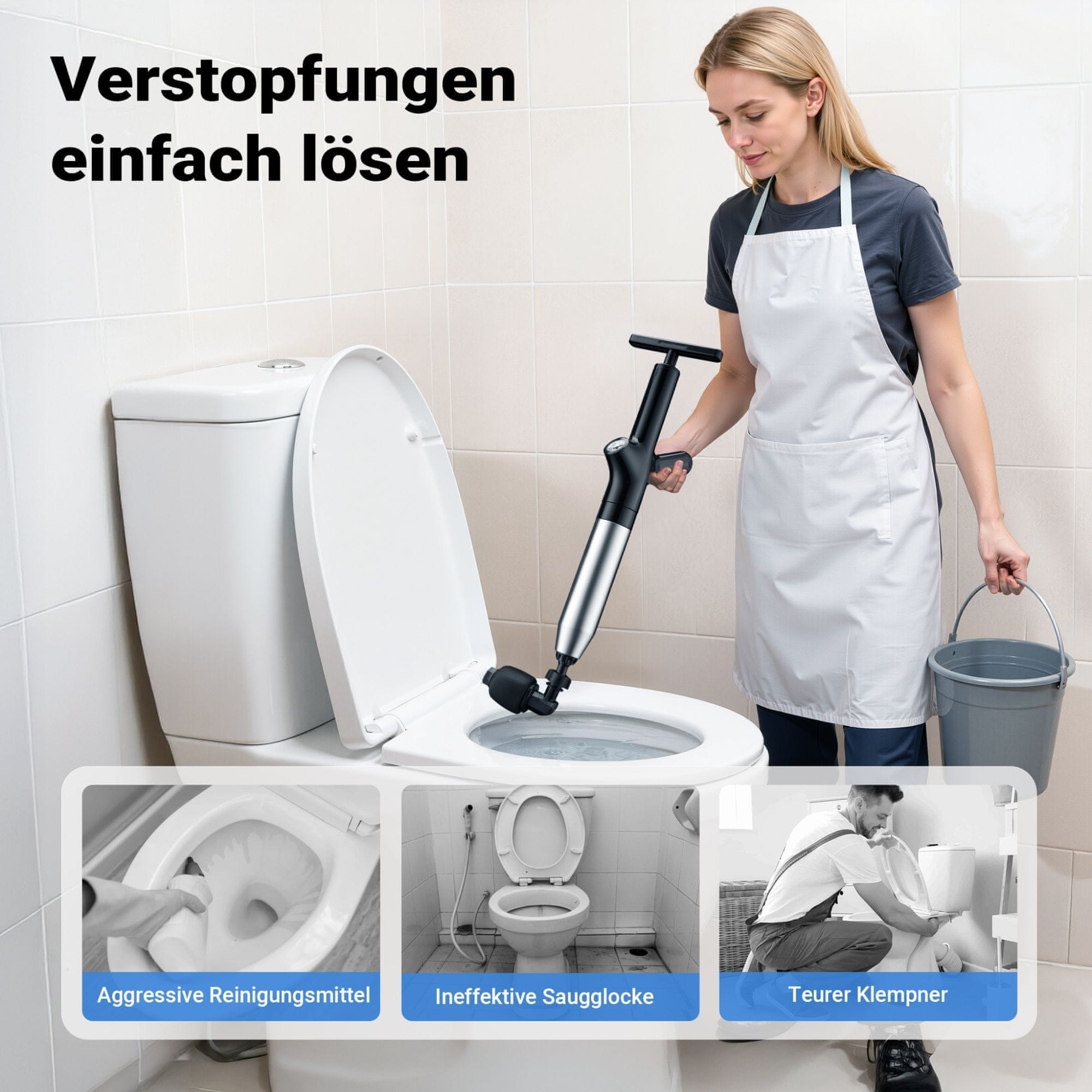 Pozabite na drage vodovodarje in strupene kemikalije! Naš visokotlačni čistilec odtokov uporablja moč stisnjenega zraka za takojšnjo odstranitev blokad v vaših ceveh. Z ojačanim ohišjem iz nerjavečega jekla (inox) in zmožnostjo ustvarjanja tlaka do 8 barov, ta naprava z enim sproženo silo prebije tudi najtrdovratnejše zamaške iz las, maščob ali ostankov hrane.