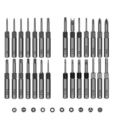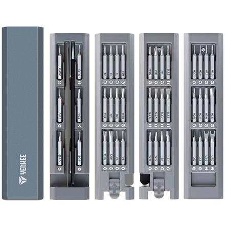Kot je vaš telefon, fotoaparat, daljinski upravljalnik, prenosnik ali druga naprava, Yenkee ACCURA omogoča enostavno servisiranje vaše naprave. Komplet ponuja 42 različnih nastavkov, od standardnih križnih in ploščatih do zelo redkih in specifičnih nastavkov. Poleg tega komplet vključuje tudi precizno pinceto in majhno kovinsko dvostransko lomilko, na primer za odpiranje prenosnih računalnikov. Vrhunska kovinska obdelava kompleta preprečuje, da bi se biti upognili ali razgradili, hkrati pa so bolj odporni proti padcem.