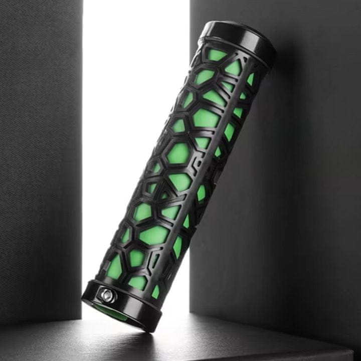 Zeleni poudarki dodajo kolesu športni in svež videz, mehka površina z nežno teksturo pa preprečuje drsenje rok – tudi pri daljši uporabi brez rokavic.