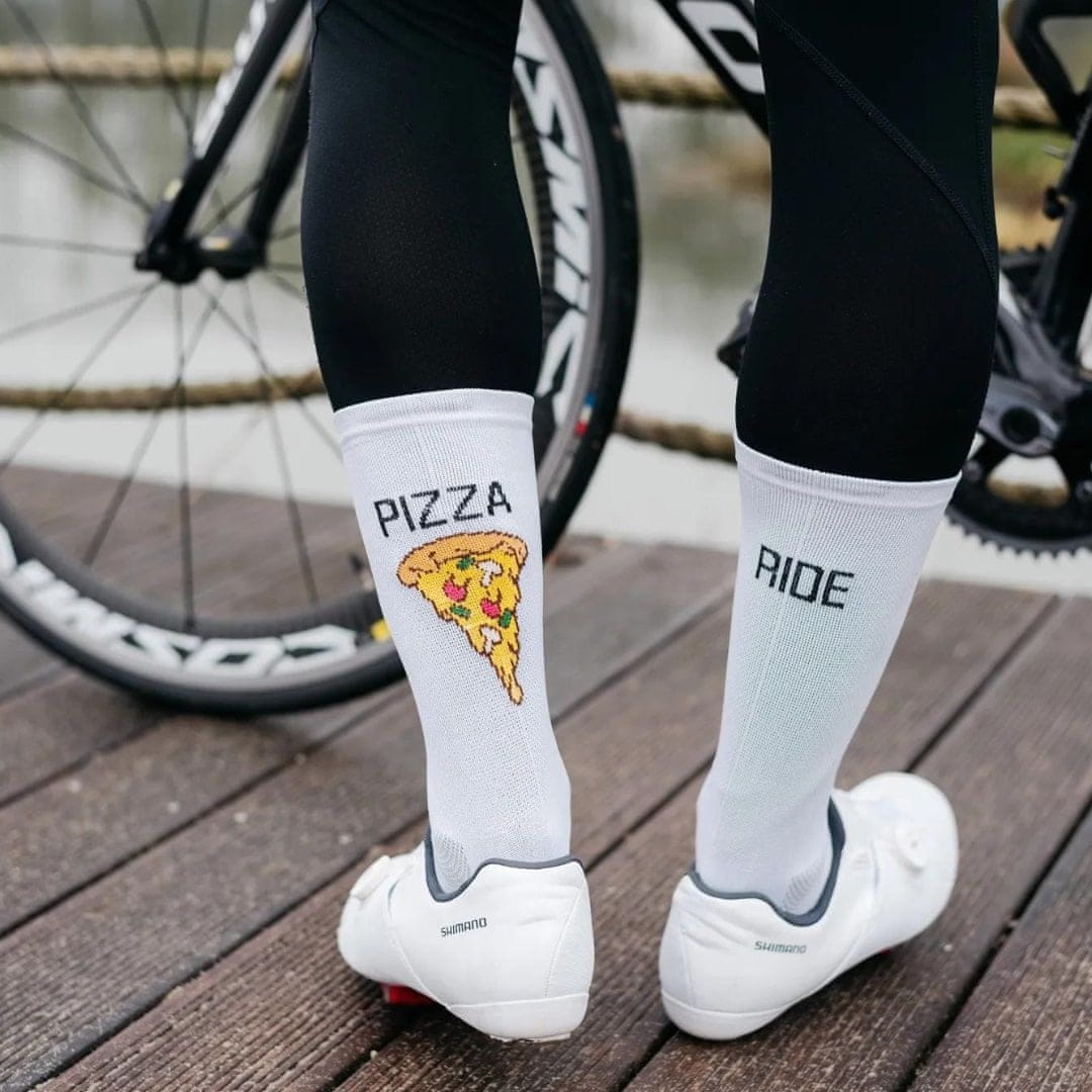 Profesionalne kolesarske nogavice TODO Cycling Pro – trpežne, zračne z logotipom Pizza Ride.